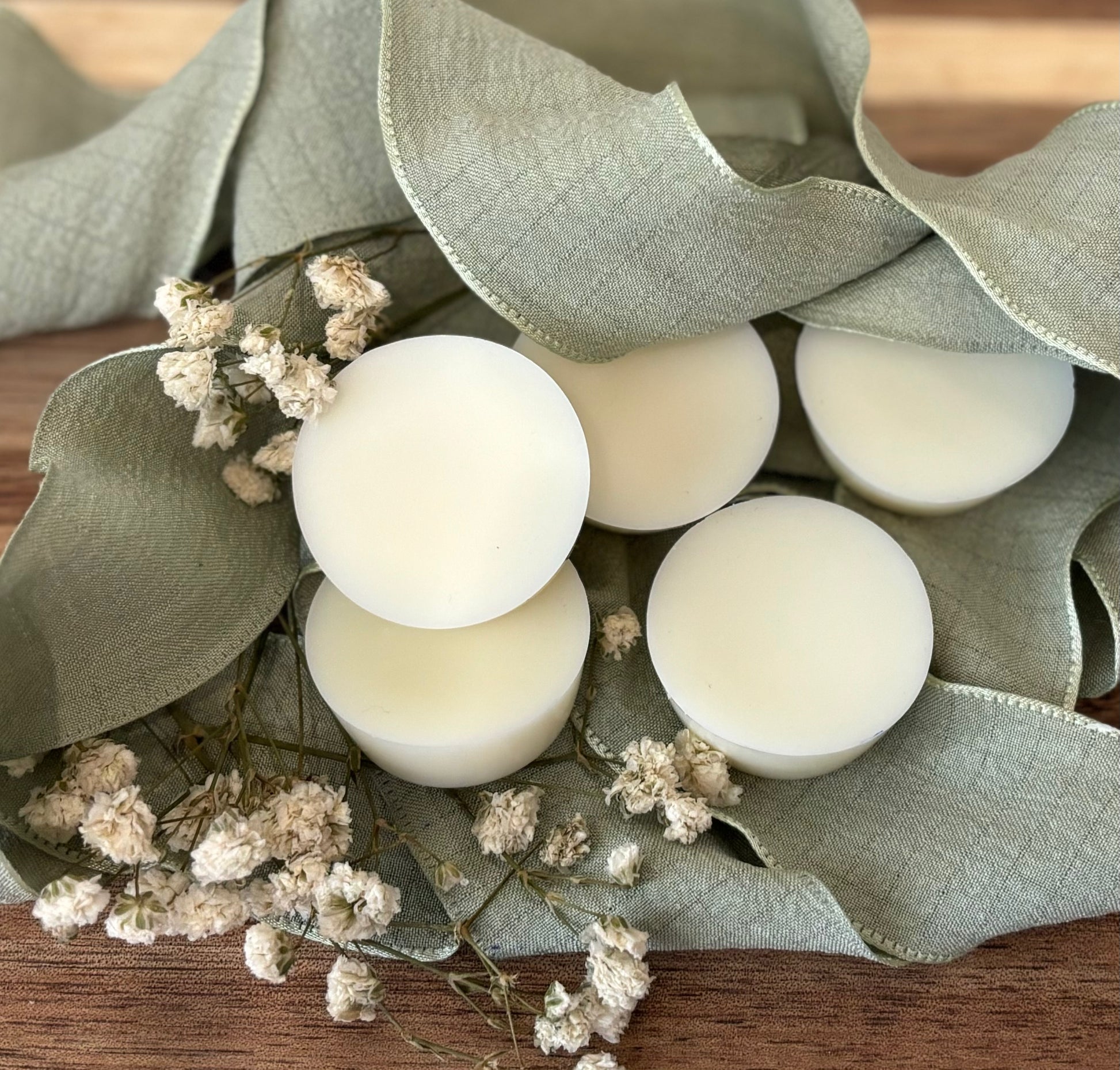 Mae ein toddi cwyr Lliain Ffres yn cyfuno nodau cain o bowdr babi a mwsg ysgafn gyda straeniau meddal o lafant, jasmin a thwlip.