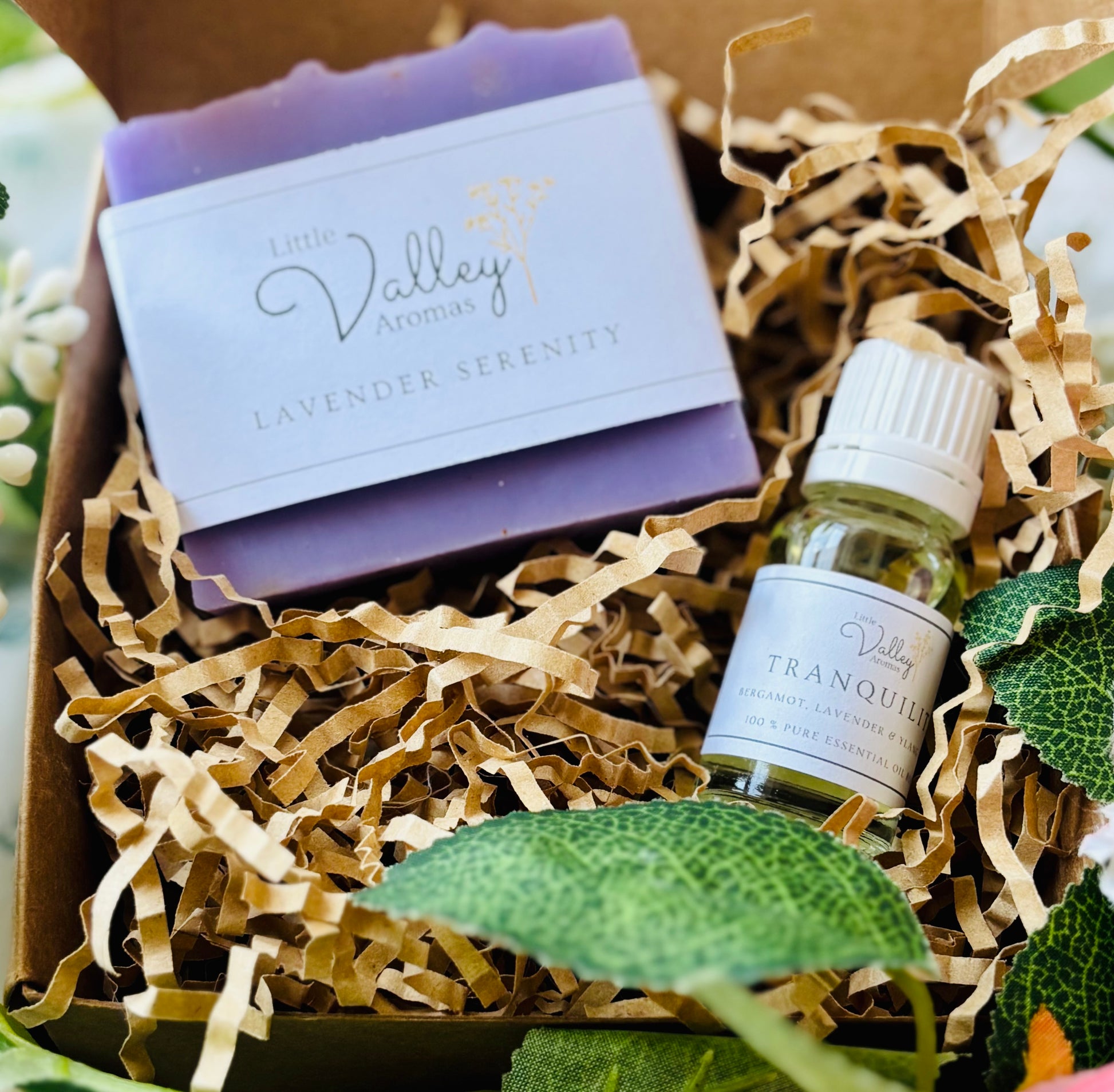 Unwind, relax, and restore with our beautifully curated Tranquility Gift Box. This soothing duo is designed to bring a sense of calm to both body and mind. Inside, you’ll find our Tranquility Essential Oil Blend—a calming fusion of pure essential oils that encourages relaxation and emotional balance. Paired perfectly with our Lavender Serenity Soap, handcrafted with gentle ingredients and the calming scent of lavender, this gift box is a serene escape in every use.